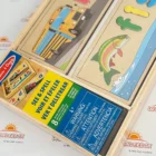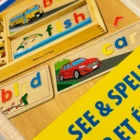 Ahşap harfleri, görsellerle eşleşen kelimeleri oluşturmak için bulmaca tahtalarına yerleştirin.