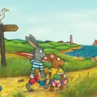 The New Friend kitabında, Pip ve Posy deniz kenarında eğlenceli bir gün geçirir; deniz kabukları toplar, kumda oynarlar.